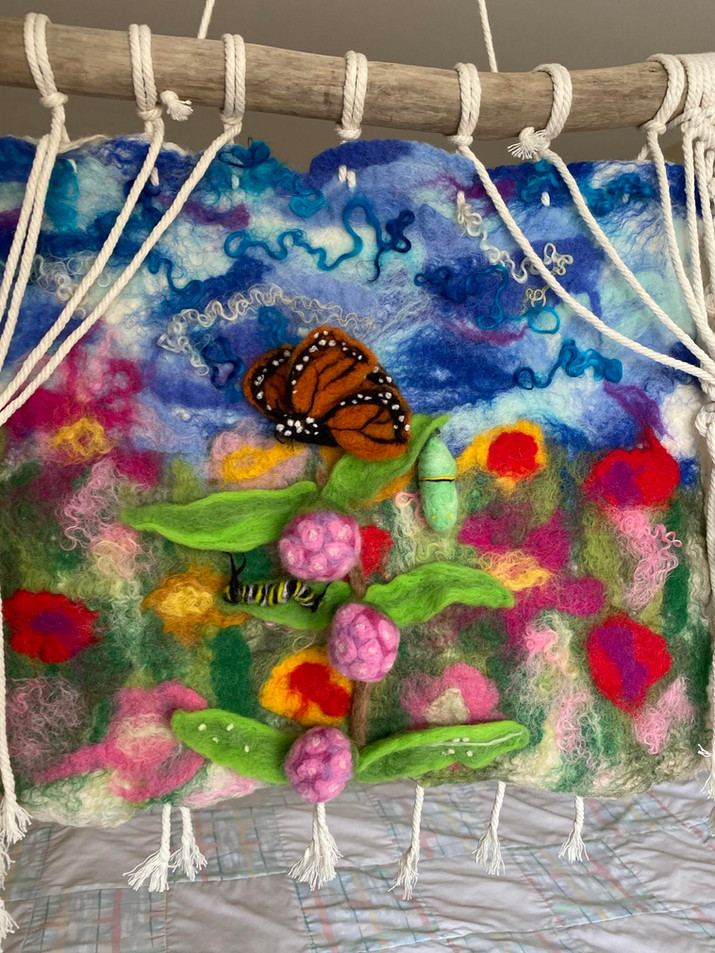 Most of her pieces are tactile and vibrant, and she often documents her process through the use of time lapse photography and stop motion animation.
